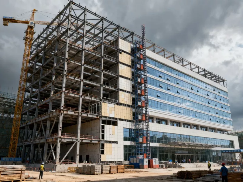 3.অন-ছাইট ইনষ্টলেচন: উপাদানসমূহ কাৰখানাত প্ৰিফেব্ৰিকেট কৰা হ’লেও নিৰ্মাণ দলে নিৰ্মাণস্থলীত এংকৰ বল্টসমূহ প্ৰি-বেৰী কৰিব যাতে ফাউণ্ডেশ্যন প্ৰি-নিউৰিয়েল সম্পূৰ্ণ হয়। শেষত, উচ্চ উচ্চতাৰ প্ৰিফেব্ৰিকেটেড মেটাল হস্পিতালৰ ভৱনটোৰ সমাবেশ কৰা হয়।