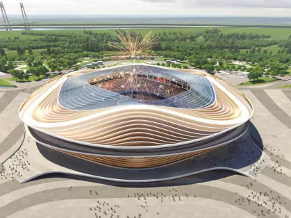 ক্ৰীড়া ষ্টেডিয়ামত বৃহৎ-স্পেন তীখাৰ গঠন এক প্ৰকাৰৰ স্থাপত্যৰ ৰূপ যিয়ে তীখাক মূল ভৱন সামগ্ৰী হিচাপে ব্যৱহাৰ কৰে আৰু কৌশলী ডিজাইন আৰু নিখুঁত নিৰ্মাণৰ জৰিয়তে অতি বৃহৎ স্থানীয় স্পেন লাভ কৰে। তীখাৰ উচ্চ শক্তি, ভাল নমনীয়তা আৰু নমনীয়তা লাভ কৰি ই বহল অঞ্চলসমূহক বিস্তৃত কৰিব পাৰে, ষ্টেডিয়ামৰ বাবে মুকলি আৰু স্তম্ভবিহীন অভ্যন্তৰীণ স্থান সৃষ্টি কৰিব পাৰে, বৃহৎ পৰিসৰৰ অনুষ্ঠান আৰু কাৰ্য্যকলাপৰ উচ্চ স্থানীয় প্ৰয়োজনীয়তা পূৰণ কৰে, লগতে এক ভয়ংকৰ আৰু আকৰ্ষণীয় স্থাপত্যৰ ৰূপ উপস্থাপন কৰে। আধুনিক ক্ৰীড়া বিল্ডিং ডিজাইনৰ এটা মূল কাৰিকৰী উপায় যিয়ে কাৰ্য্যক্ষমতা আৰু নান্দনিকতাক একত্ৰিত কৰে।