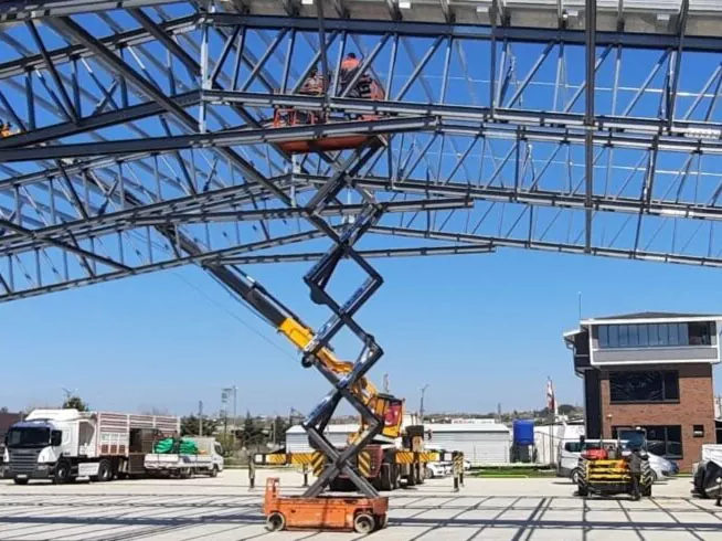 ব্যৱহাৰিক আৰু সুন্দৰ প্ৰিফেব্ৰিকেটেড ষ্টীল নিৰ্মাণস্থলীলৈ প্ৰেৰণ কৰা হয় আৰু ক্ৰেন আৰু অন্যান্য গধুৰ সঁজুলি ব্যৱহাৰ কৰি একত্ৰিত কৰা হয়। সংস্থাপন প্ৰক্ৰিয়া সাধাৰণতে স্তম্ভসমূহৰ পৰা আৰম্ভ হয়, যিবোৰ ভেটিৰ সৈতে স্থাপন আৰু লংঘিত কৰা হয়। তাৰ পিছত স্তম্ভবোৰ সংযোগ কৰিবলৈ বিম স্থাপন কৰা হয়, গুদামৰ ফ্ৰেম গঠন কৰা হয়। ছাদৰ ট্ৰাছসমূহ ফ্ৰেমত স্থাপন আৰু সুৰক্ষিত কৰা হয়, যিয়ে ছাদৰ ব্যৱস্থাক সমৰ্থন কৰে।