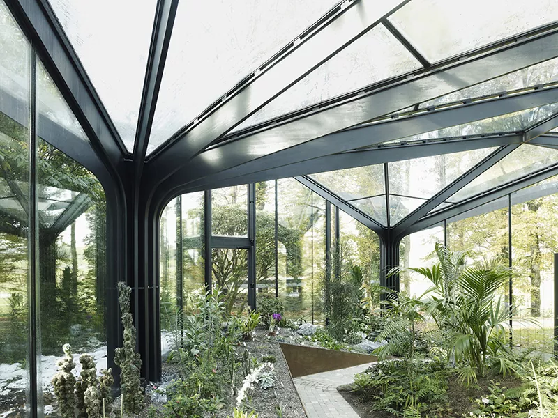 তীখাৰ গঠন উদ্ভিদ পেভিলিয়নে আধুনিক সেউজ গৃহ প্ৰযুক্তি নিৰৱচ্ছিন্নভাৱে একত্ৰিত কৰিব পাৰে, যিয়ে গ্রীষ্মমণ্ডলীয় আৰু মৰুভূমিৰ দৰে একাধিক জলবায়ু মণ্ডলক সমৰ্থন কৰে। পৰম্পৰাগত উদ্ভিদ পেভিলিয়নত ছীল কৰা আৰু শক্তিৰ অধিক ব্যৱহাৰ বেয়া হয়।